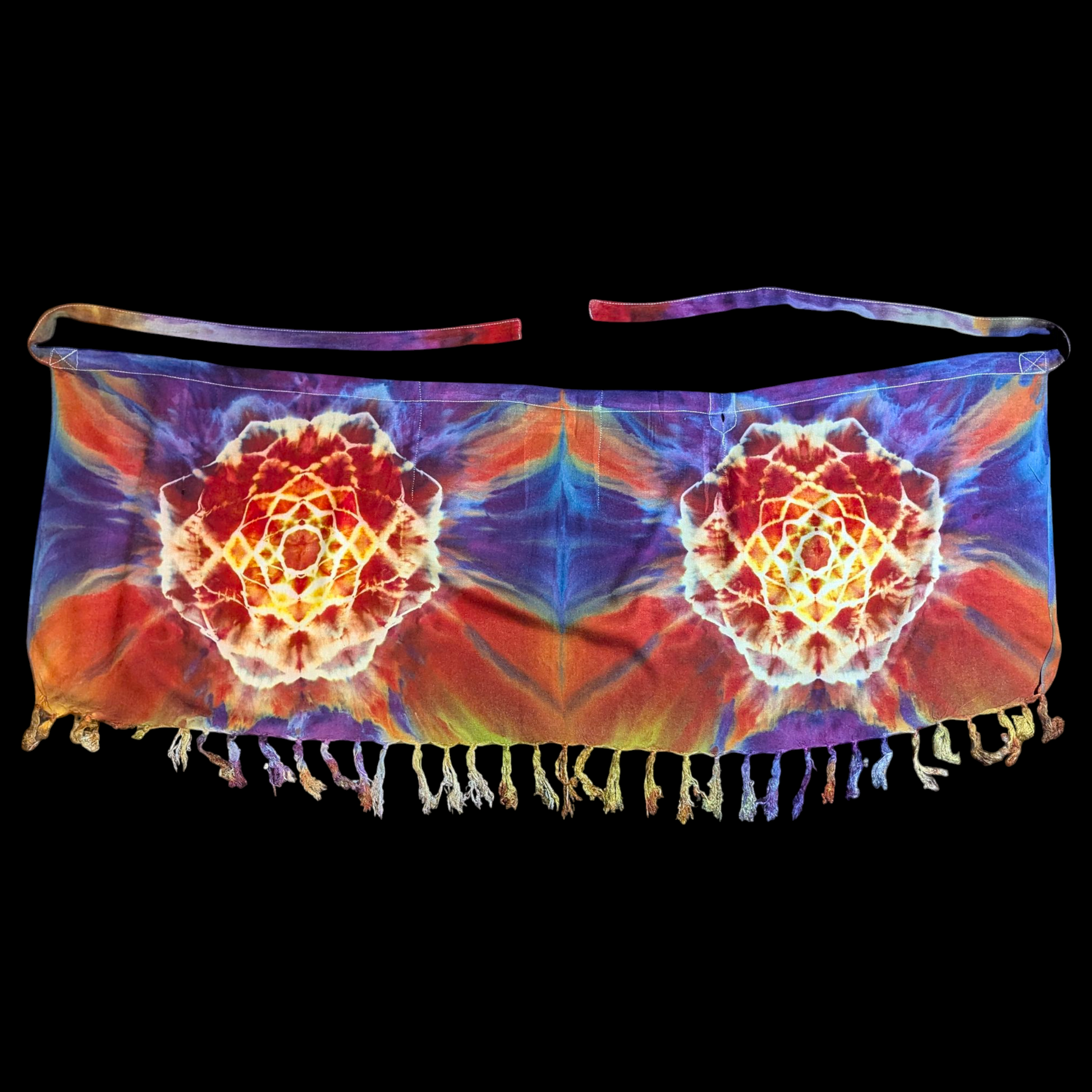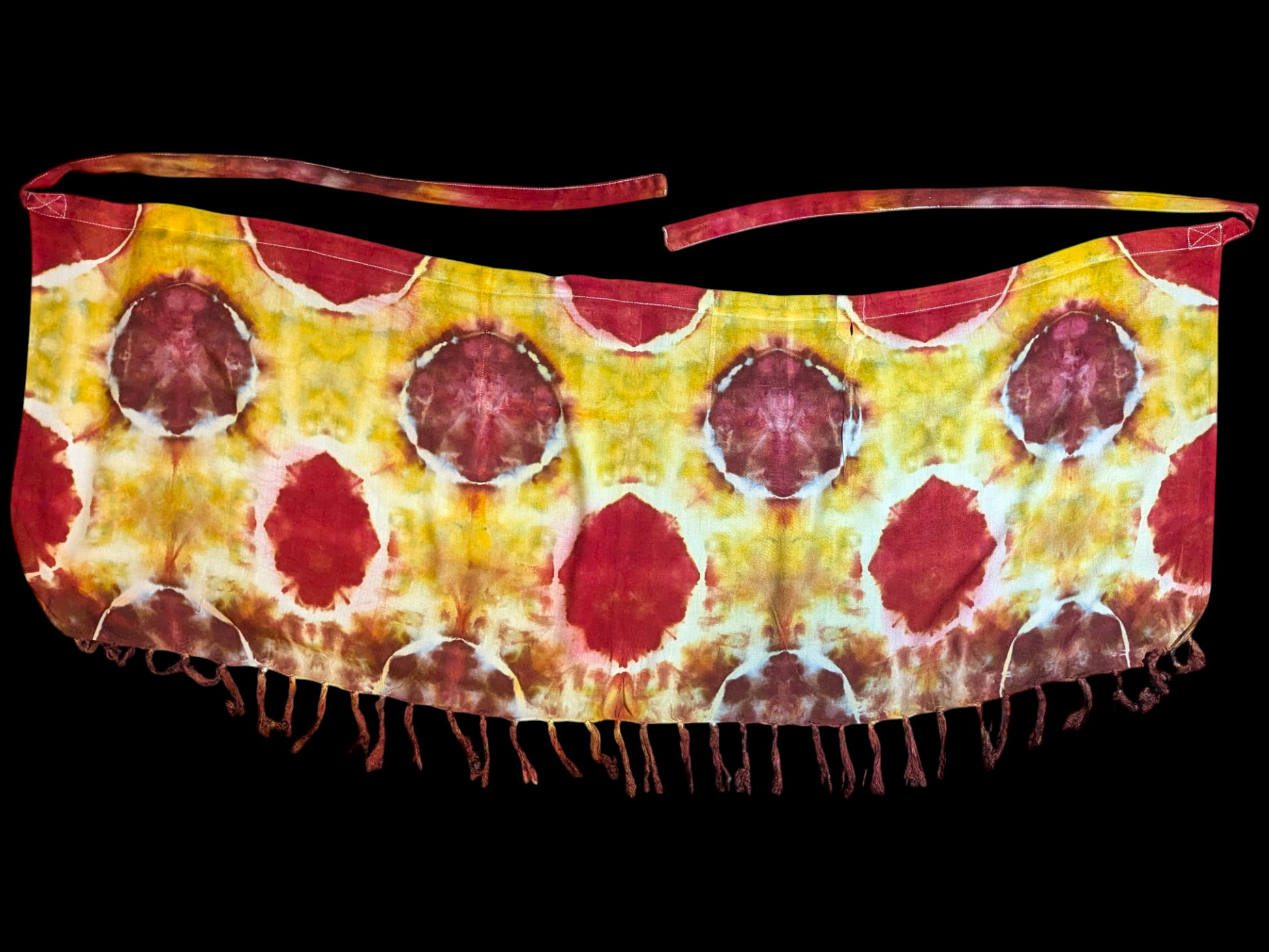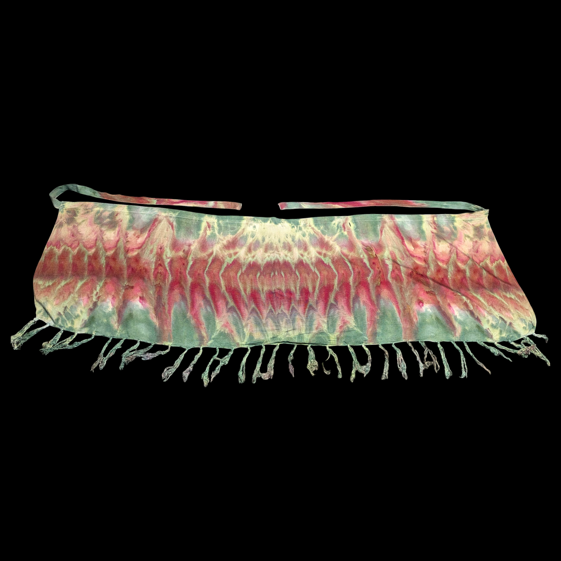 This light-weight wrap skirt has a fringed hem and an adjustable tie at the waist to fit a variety of waist sizes.
