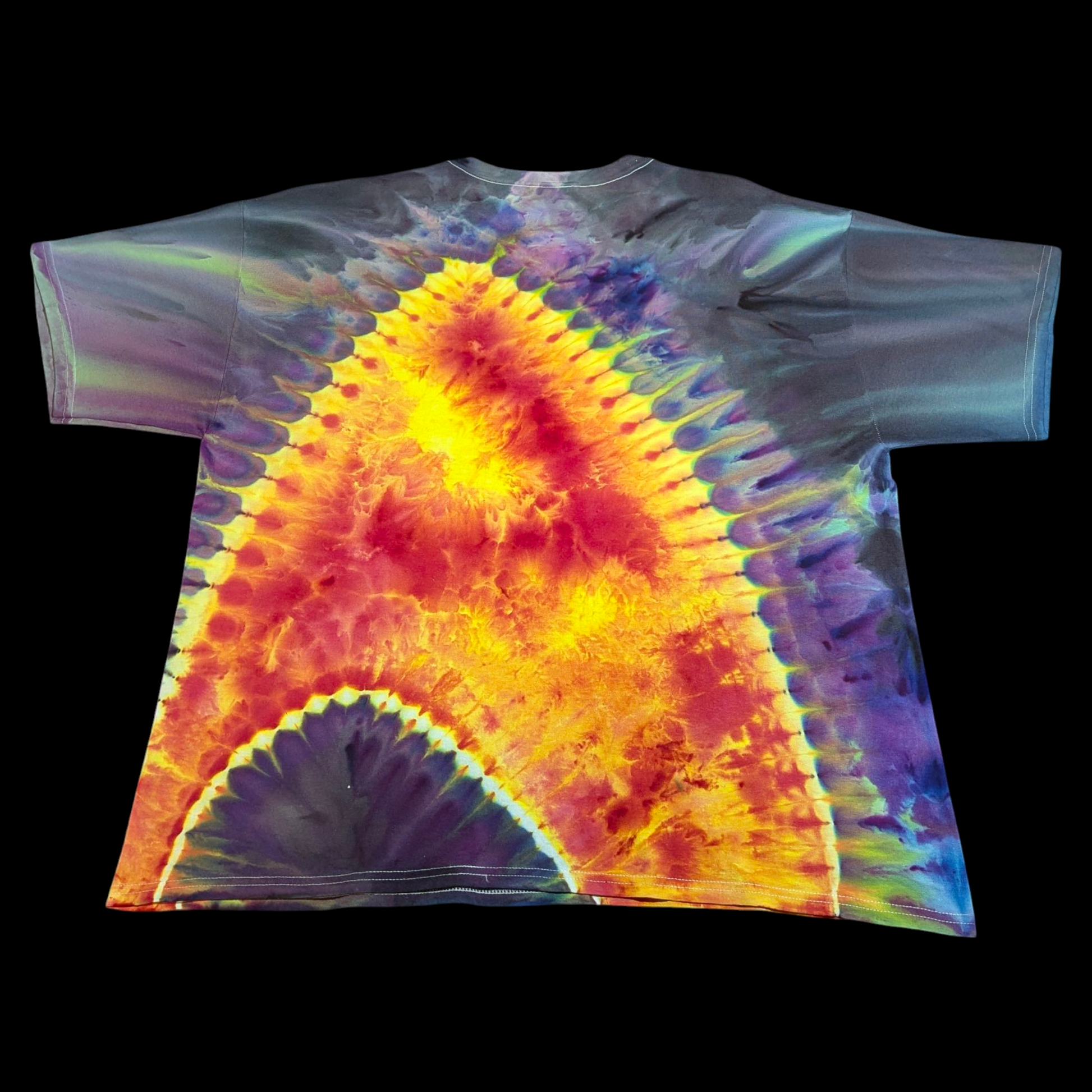Step boldly into the unknown with Starfleet Sunburst — a blazing fusion of cosmic color and handcrafted precision. The design erupts in fiery gradients of yellow, orange, and crimson, framed by a deep indigo arc that fades into ethereal violet and stormy gray. The sweeping burst feels like a solar flare cutting across the galaxy, making this piece both energetic and otherworldly.