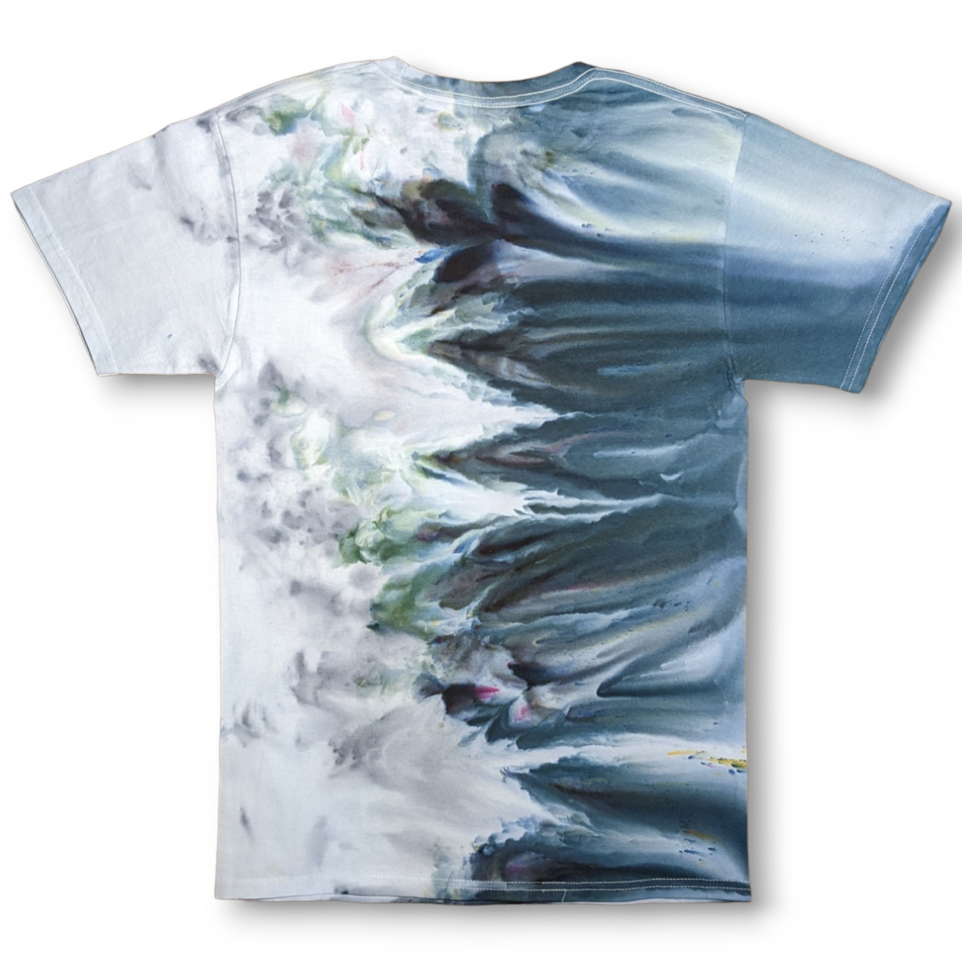 Original and unique ice dyed shirt made made using locally sourced ice from the Northeastern US.