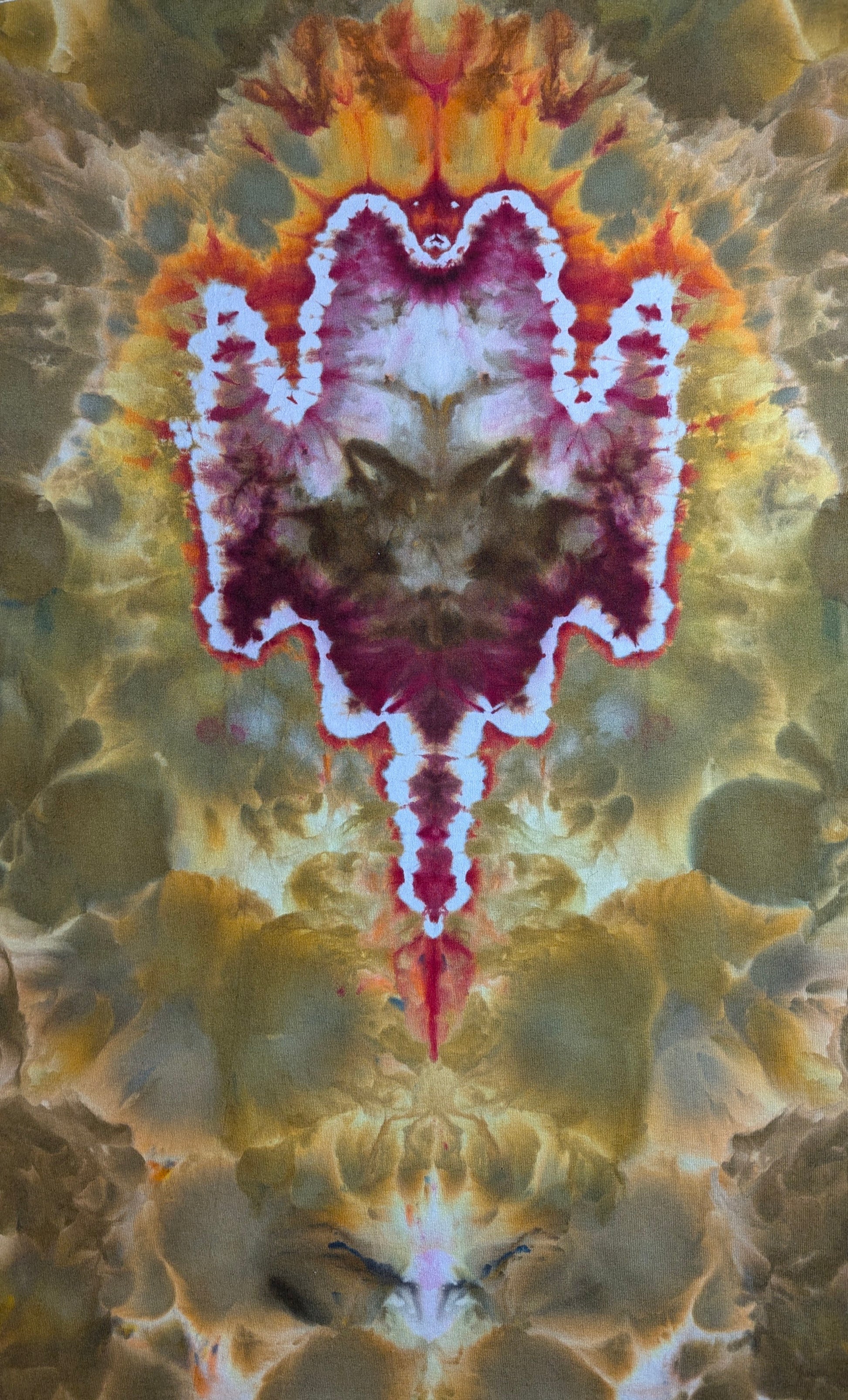 This new fall themed color scheme has Mandalas on the sleeves and front center. The melting ice took some artistic liberties on the back. Do you see a face looking back at you? Wonder what it's trying to say...